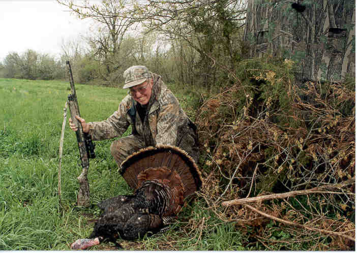 Urbandale, Iowa, while hunting with The Turkey Pro, Roger Raisch, bagged this adult Iowa gobbler on May Day 1999. The bird flew